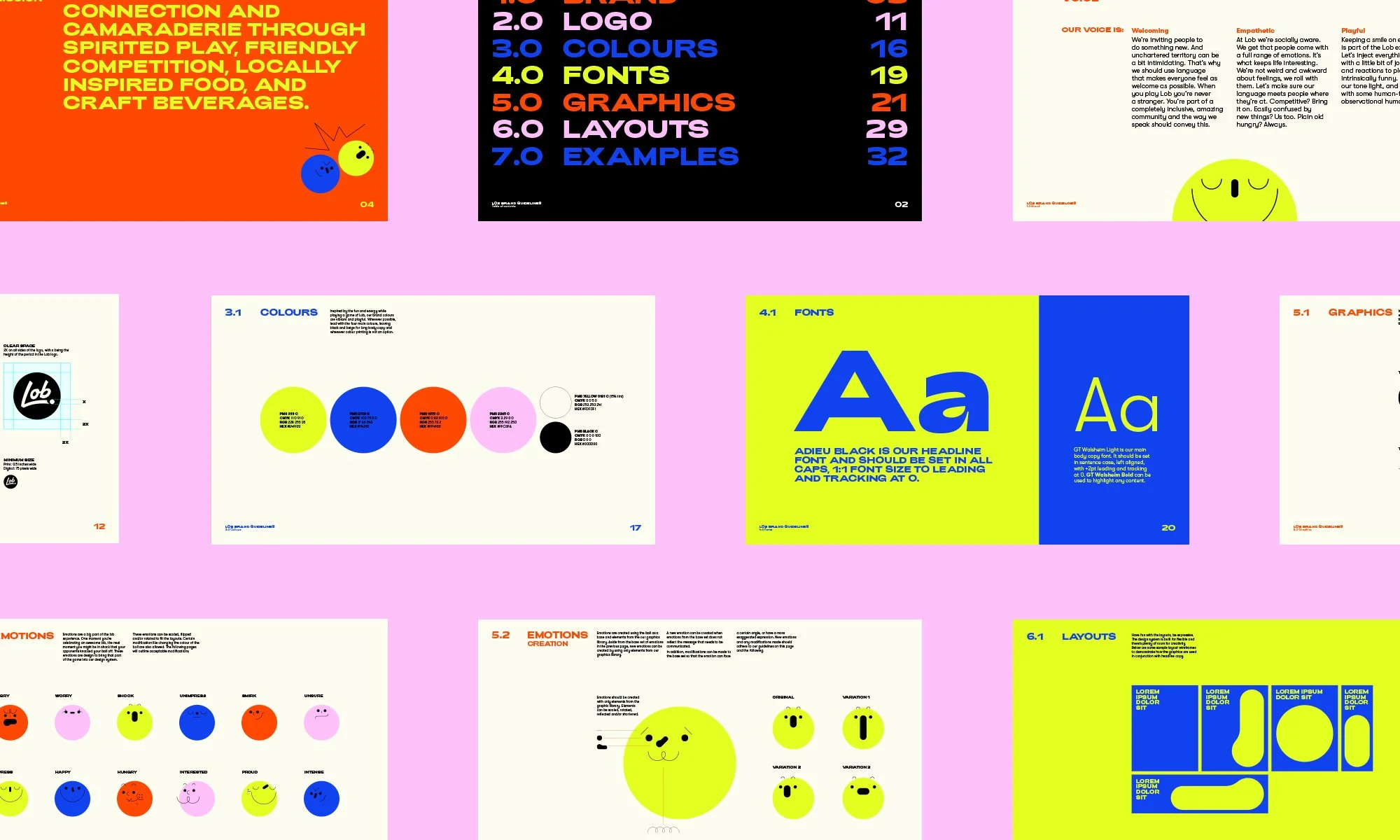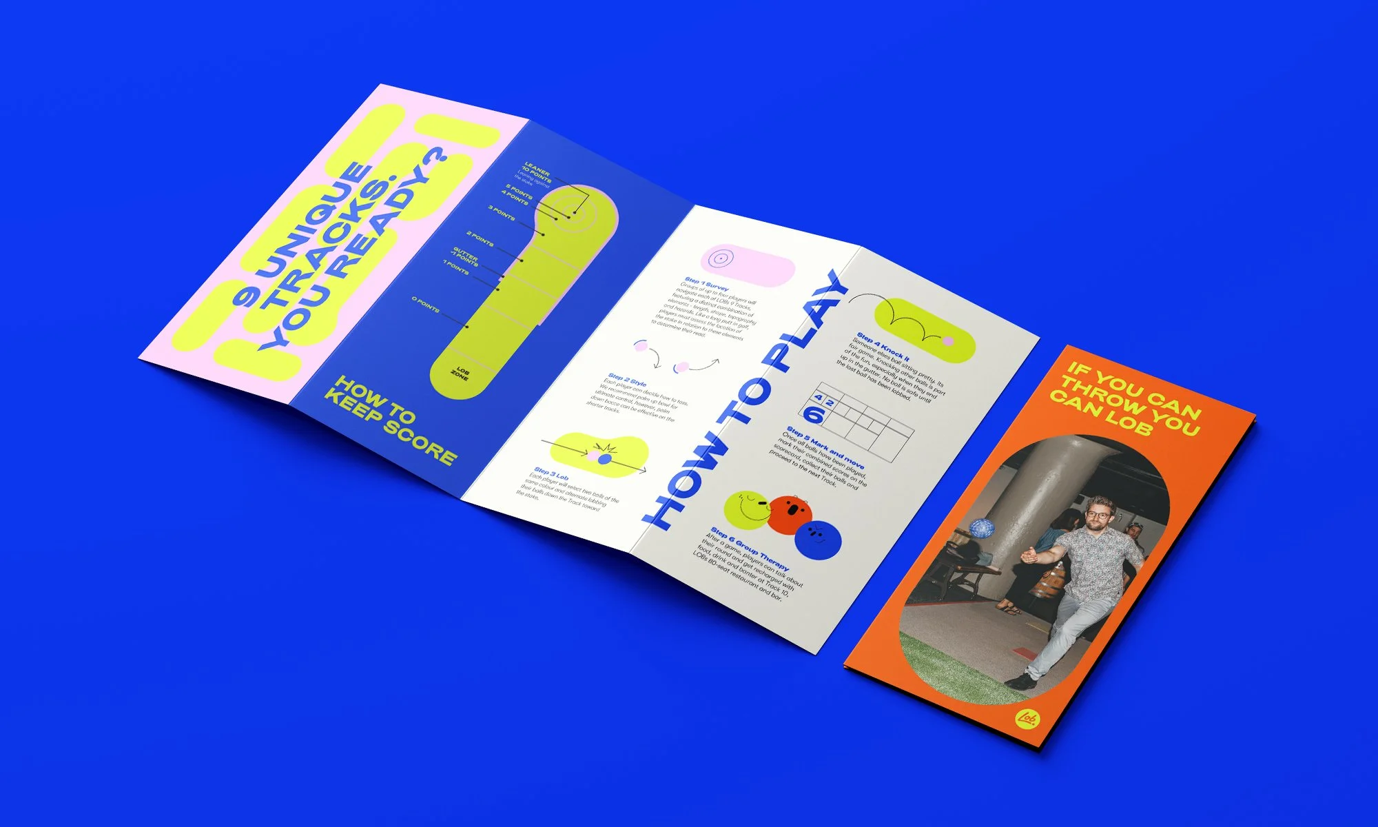 Using all elements of play from balls to tracks to trajectory throw lines, a flexible design system was created so that when combined together, shows the limitless emotions unleashed through the power of play. The new brand is accessible and vibrant, where every piece emotes the feeling of joy and connection you get when you Lob.